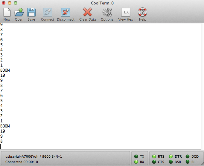 And here is the output from CoolTerm. It was surprisingly easy to get this working. ;-)