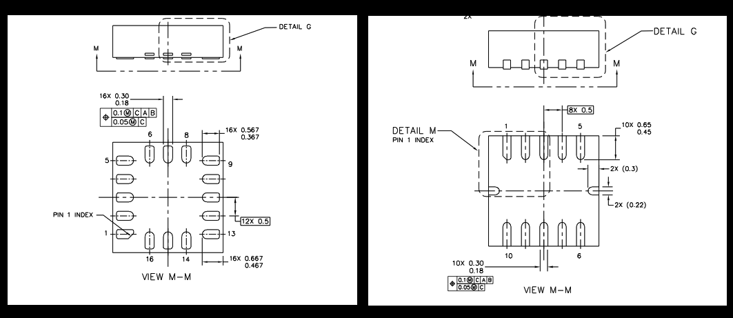 After a few unsuccessful attempts to solder the MMA8452 chip at home, I found a better candidate - the MMA7660 which has a DFN-10 package. As you can see from the schematic below, the latter has only 10 pins, and the pins extend to the sides, which makes it easier to solder.
